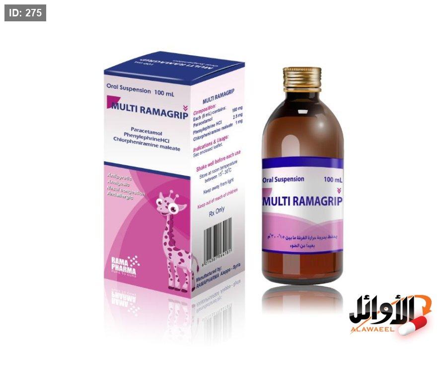 التركيب : كل 5 مل تحوي 160 ملغ باراسيتامول & 2.5 ملغ فينيل إفرين & 1 ملغ كلورفينيرامين