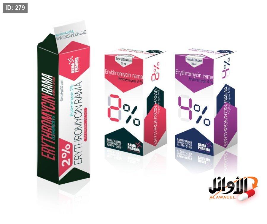 التركيب : إريترومايسين كريم 2% - المحلول بعيارات 2 % - 4 %