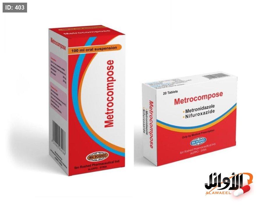 التركيب : الشراب Metronidazole 250mg Nifuroxazide 200mg